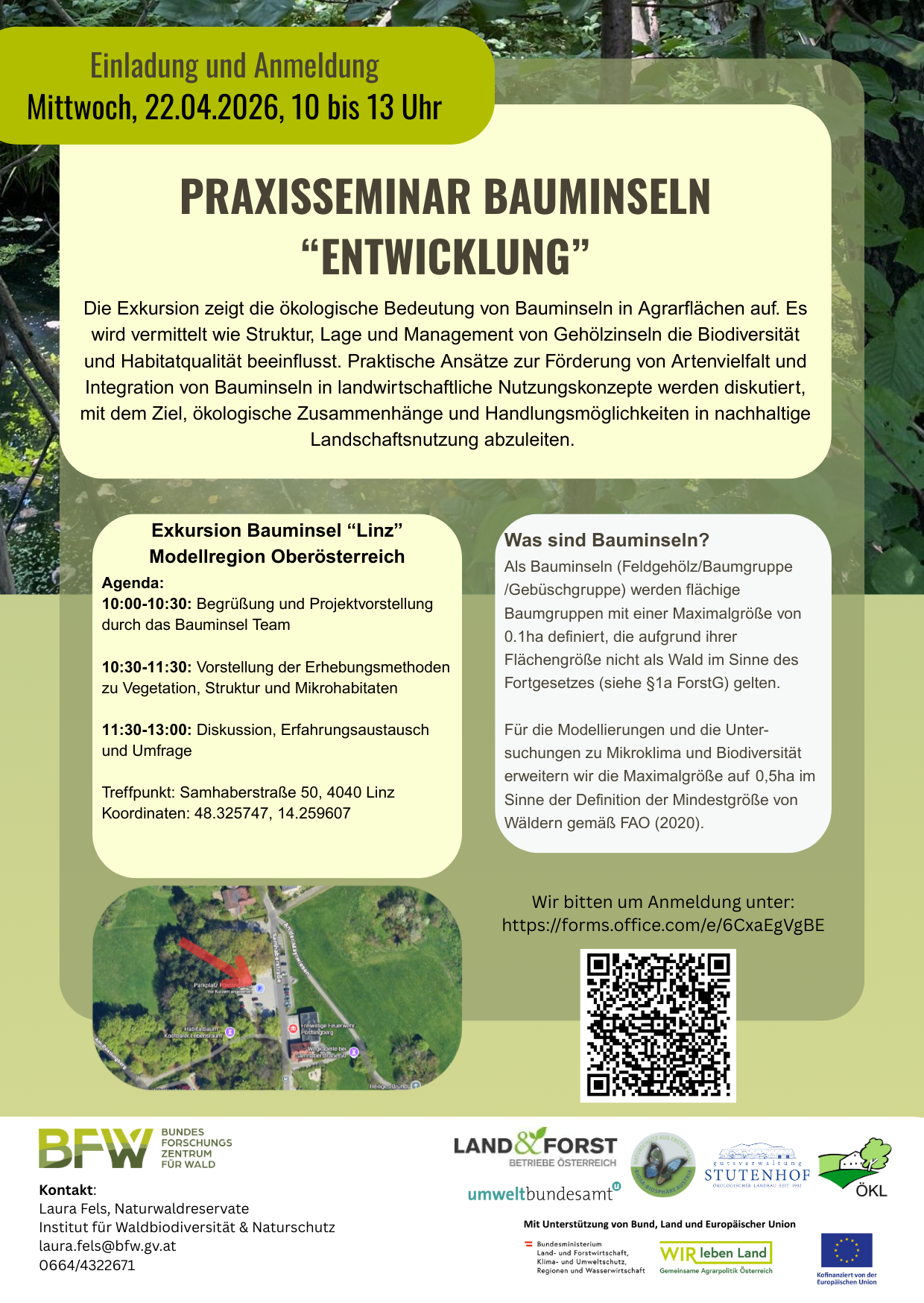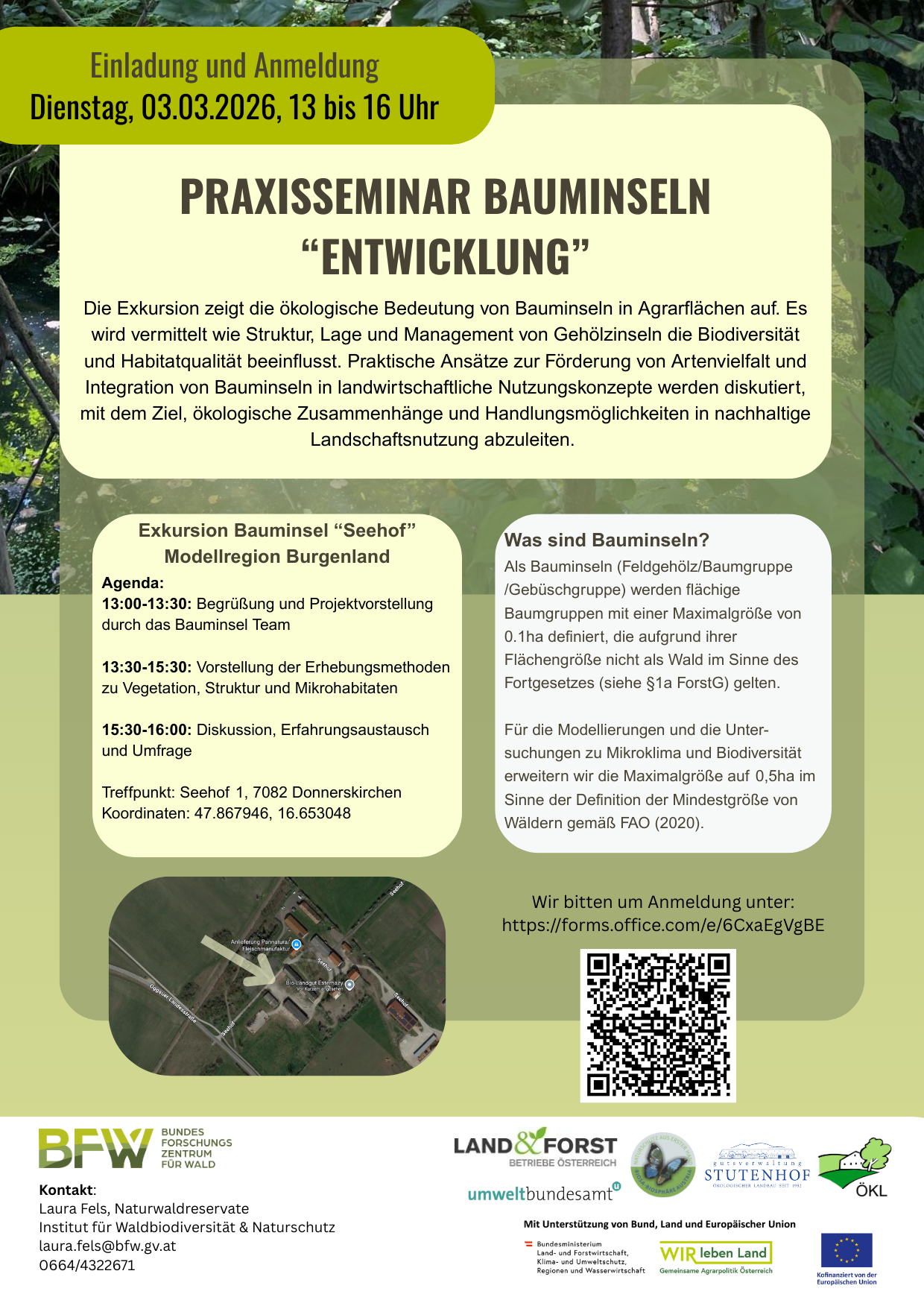 In fünf Modellregionen in Niederösterreich, Oberösterreich, Burgenland, Salzburg, Steiermark und Kärnten werden Bauminseln systematisch erhoben und naturschutzfachlich bewertet. Analysiert werden biodiversitätsrelevante Strukturparameter, Vegetationsgesellschaften, der Grad der Hemerobie sowie potenzielle Gefahren- und Stressfaktoren. Ziel ist es, konkrete Maßnahmenempfehlungen zu entwickeln, um die Habitatqualität dieser Strukturelemente nachhaltig zu verbessern und die Lebensraumvernetzung in der Agrarlandschaft zu stärken.